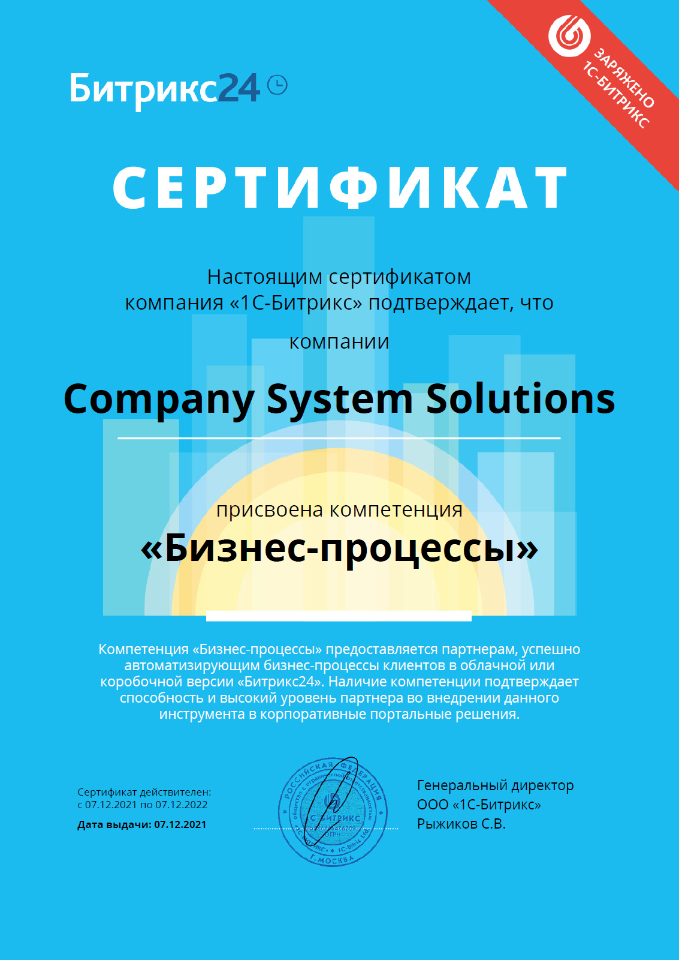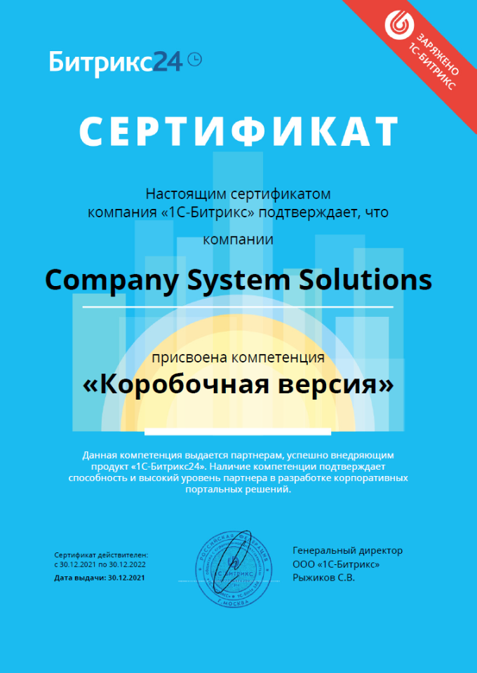 Мы, компания Company System Solution - Золотой сертифицированный партнер Битрикс24 в г. Ростов-на-Дону, специализируемся на внедрении и настройке Битрикс24 по всей России, проводим обучение сотрудников и занимаемся консалтингом в сфере продаж.
